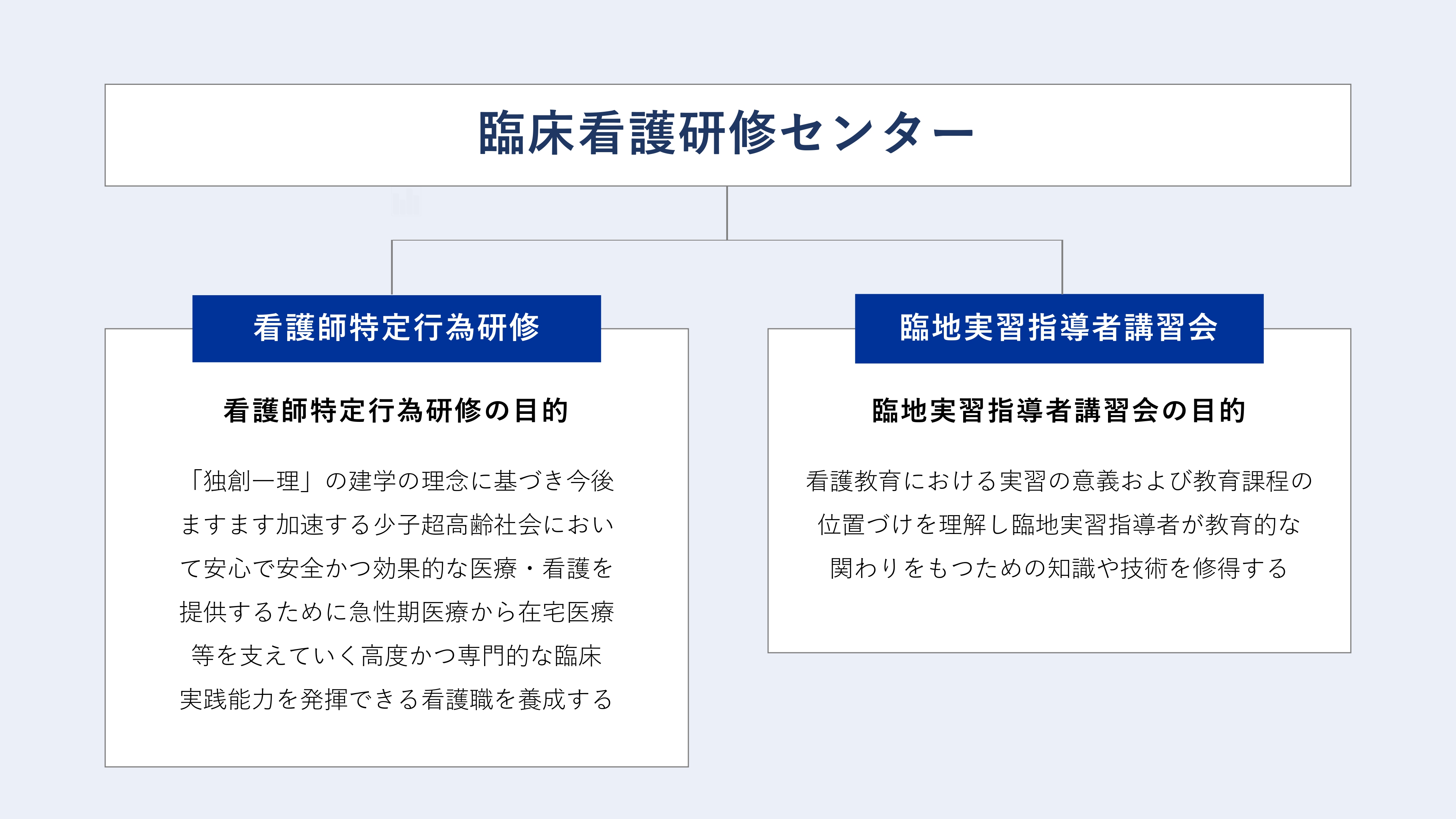 当センターは本学のみならず地域医療に貢献し看護職の発展に寄与するため看護実践研修を実施することにより看護実践能力・マネジメント能力・看護職の教育力を高めることを目的としています。