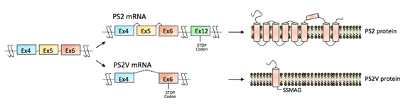 統合失調症は100人に1人という高い罹患率にも関わらず、その発症機構はいまだ解明されておらず、遺伝的素因と環境要因が複雑にからみあっていると考えられています。最近になって、統合失調症に代表される各種精神疾患患者において、種々の関連遺伝子の選択的スプライシング調節異常が報告されてきています。しかしながら、スプライシング異常の観点からの積極的な研究は、ほとんどなされていないのが現状です。そんな中、前述の異常PS2V蛋白質やmRNAが、統合失調症の関連領域の一つとして指摘されている前頭前野においても検出されることを、オーストラリアのグループが明らかにしました。私たちは、異常PS2V蛋白質とその誘導因子であるHMGA1a蛋白質が、統合失調症の発症機構にどのように関わっているかについての研究を行っています。