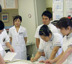 | 第3日 | 広い大学病院を「散歩」したあと、嚥下障害のレクチュアを受け、嚥下造影、嚥下内視鏡を実際に体験しました。まとめは才藤教授からのリハ医のあり方と研究についてであり、感想として「リハ医とは何かという疑問が解けてきた」などがありました。 |