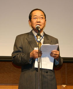 記念講演の講師であります里宇先生に乾杯をして頂き、祝賀会が開演。 50回までのリハ研を早川先生に、 現在に至るまでいろいろな分野からたくさ