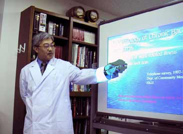 | 日本リハビリテーション医学会のリハ医交流プログラムでDr. Wongが2004年2月2〜3日の2日間、藤田保健衛生大学リハビリテーション部門を訪問しました。Dr. Wongは脊損リハが専門で、藤田リハが開発した対麻痺用装具プライムウォークとトレッドミル歩行訓練法を興味深く見学していきました。 | ||||||||