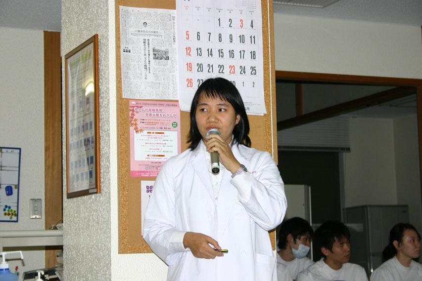 ◆ 11月22日は「Rehabilitation in VIETNAM:ベトナムでのリハビリテーション」と自ら研究されている「Shoulder subluxation in hemiplegia patients:脳卒中片麻痺患者の肩の痛み」に関してのレクチャーをして頂きました. ベトナムの医療に関して,また研究に関してディスカッションができ,とても有意義な時間となりました. |