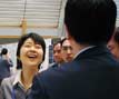 | 4月24日(土):ポスター展示のため,9時に会場入りしました.ポスター会場では,参加者のみなさんが各々掲示中でした.私も掲示しようと思って始めましたが,掲示板が固いし,画鋲が大きいために格闘していました.そこへ総合脊損センターの岩坪先生が登場しました.「お久しぶりです〜.」と挨拶すると,「ああ,長江先生.今日の質問だけどね」との返答.「ん?今日の質問?何だろう?えっ!もしかして私のセッションの座長!」その通り,私のセッションの座長でした. | ![]() |