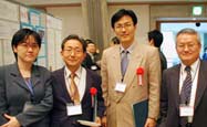 結果は写真の通りでした.(写真:座長と長江.左から長江,岩坪先生,Bum Suk Lee先生,Hyun-Yoo Ko先生)医局の先生方も各々プレゼンテーションをされ,ばっちりの結果でした.国際学会ではありましたが,リハ部,医局の先生方が多数参加していたため,あまり緊張することなく,学会を満喫することができました.学会終了後,京都観光に行って,学会の疲れを吹き飛ばしました.また,国際学会に参加するぞ〜と京都の新緑に誓って,私の国際学会奮闘記第二弾が終わりました. 2003.5.13 sentences: ON, layout: SS |