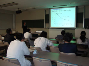 第79回 09/5/22 無酸素性運動能力の評価 −臨床的評価指標としてのWingate AnT− 講師 岩田 学 先生 弘前大学大学院保健学研究科 障害保健学分野教授 今回のご講演では,無酸素の運動について研究を細かく御紹介いただき、大変有意義な研修会でした。 2009/5/22