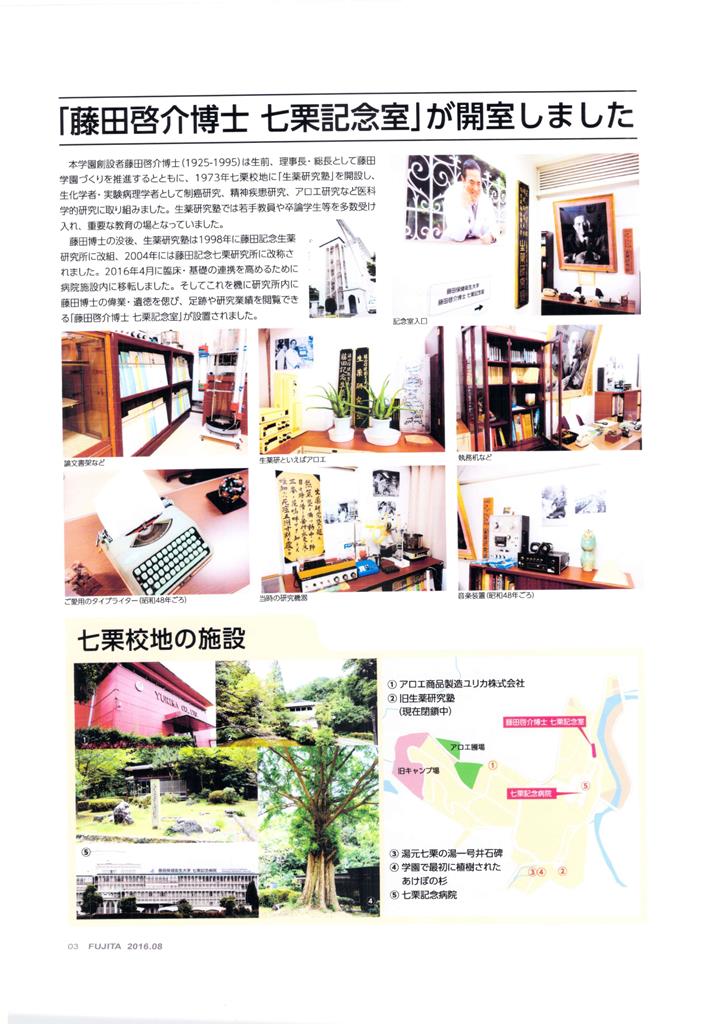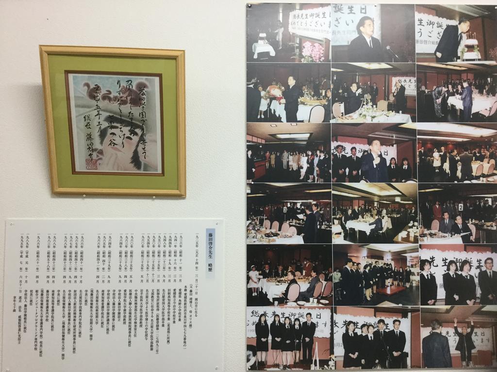 豊明校地『獨創一理祈念館』と七栗校地『総長藤田啓介祈念碑』、そして七栗校地『総長藤田啓介七栗祈念室』において、藤田先生の偉業、遺徳、お人柄を感じとっていただければと願っております。