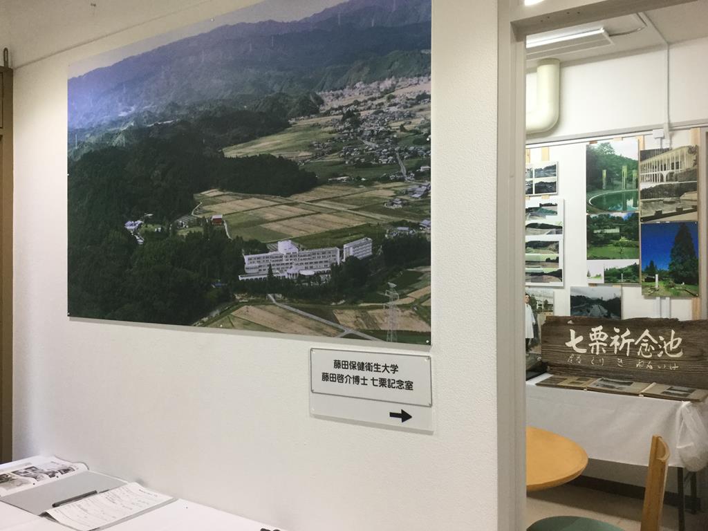 学園創設者 故 藤田啓介総長が生涯で最も長く過ごされたのが旧三重県久居市の藤田学園 七栗学綜です。ここは学長・理事長・総長として学園づくりの場であり、学者として自ら基礎医学研究に没頭された場であり、教員や学生に全人教育の情熱を注がれた場でもあります。『七栗祈念室』は、藤田先生が七栗で過された足跡と生薬研究塾の変遷の歴史的記録でもあります。