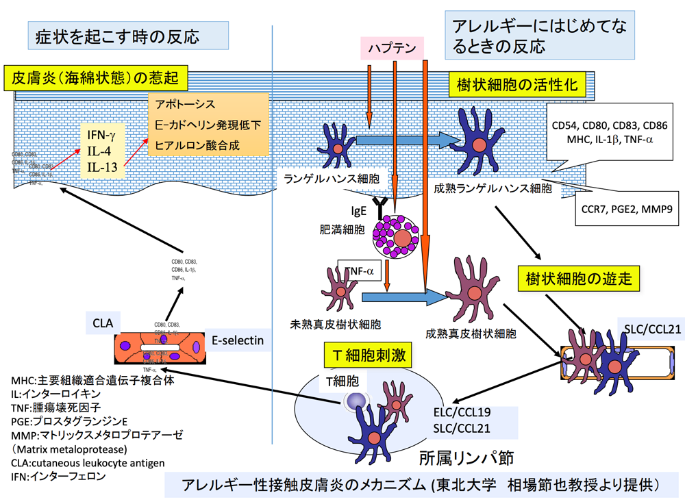- アレルギー性のかぶれ(アレルギー性接触皮膚炎)は、皮膚に付いた化学物質から体を守るための免疫が過剰に反応し、体に障害をもたらすことです。