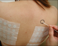 - パッチテスト用に開発された布やアルミニウムの皿を絆創膏につけたパッチテストユニットがあり、アレルゲンを付けて皮膚の上に2日間貼ります。アレルゲンを強制的に皮膚から吸収させ、人工的にアレルギー性接触皮膚炎を再現させることにより原因を特定しようとするものです。