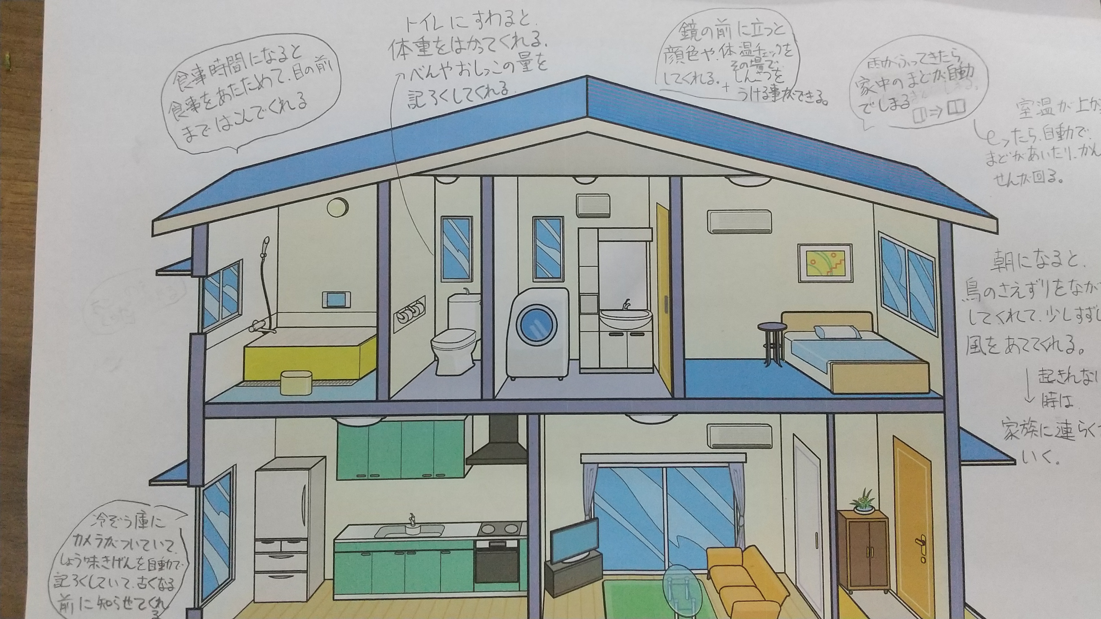 今回のプログラムは「藤田医科大学×SDGs」と題し、まずは、大学で取り組んでいるSDGsを紹介。続いて「SDGsを実践!自分のお家をロボティックスマートホーム化しよう!」をテーマにロボティックスマートホーム・活動支援機器研究実証センターの田辺茂雄副センター長らと中継をつなぎ、最新の研究やさまざまなロボットについて説明しました。参加者は、家のイラストに自分の考えたアイデアを書き入れ投稿しました。後半は、石原慎地域連携教育推進センター長が医療現場で働くロボットについて動画を交えて紹介しました。終了後のアンケートでは「みんなでアイデア投稿したり、実際にやっていることを見たり、質問に答えてもらったりすごく楽しかった」などの感想が多数ありました。