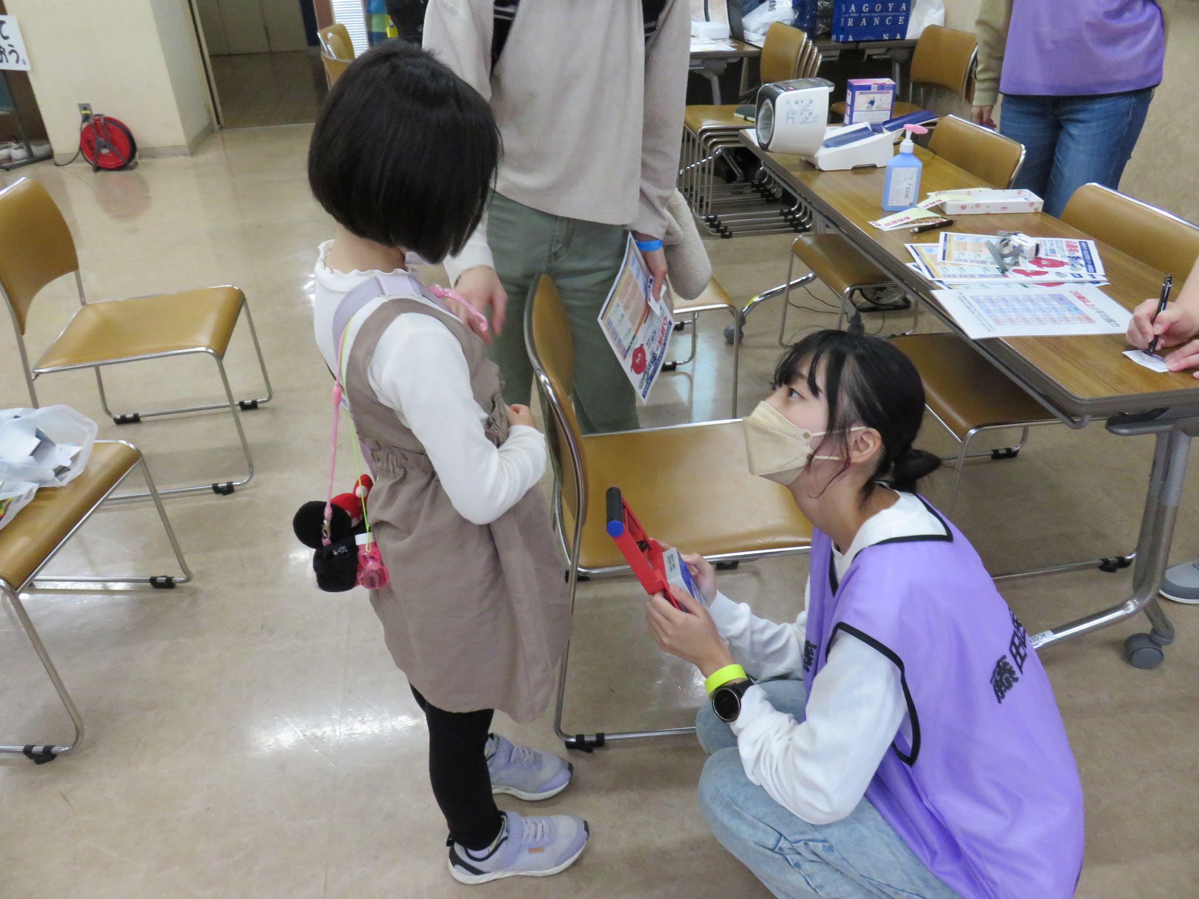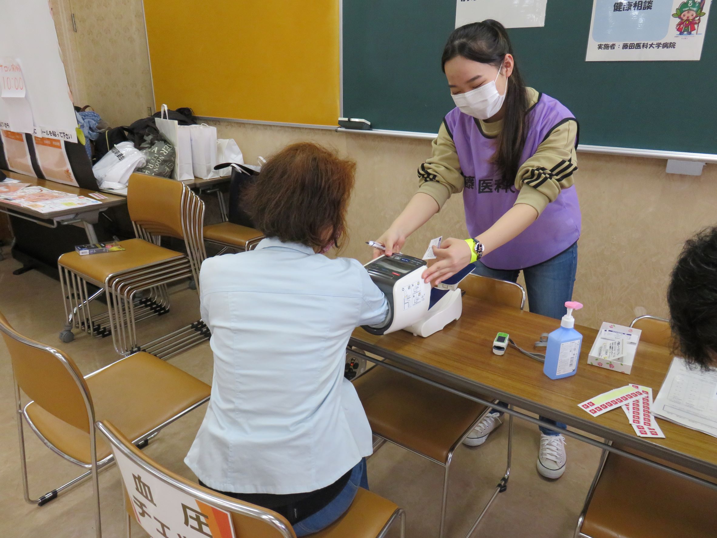 2022年11月13日東郷町文化産業まつり ブース出展 Tweet 東郷町文化産業まつりが、11月12・13日に3年ぶりに開催され、本学は13日の健康コーナー(東郷町民会館)でブースを出展しました。教職員3名と学生ボランティア3名を派遣し、血圧・握力・SpO2測定、立ち上がりテスト、キッズ白衣撮影会を行いました。午後からはあいにくの雨でしたが、たくさんの親子連れで賑わい、377名の方に体験してもらいました。