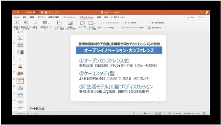 - 豊明市のカンファレンスの特徴。オープンイノベーションカンファレンス。勉強になるから、多くの関係者が無償で参加する。では、それが本市でも可能かと言えば、簡単ではない。なぜ、なぜを繰り返し、本市で言う、地域ケア会議を少しでもより良いものにしたい。