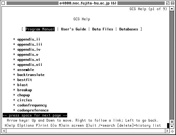 読み進んでいって、最初の画面(つまり上の画面ですが)に戻りたいときは[m]