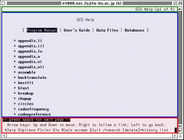 真ん中の青の部分が実際のGCGのヘルプが表示される部分です。