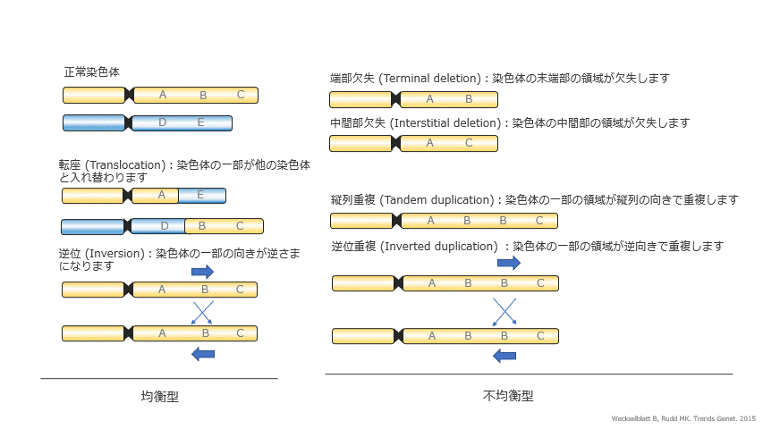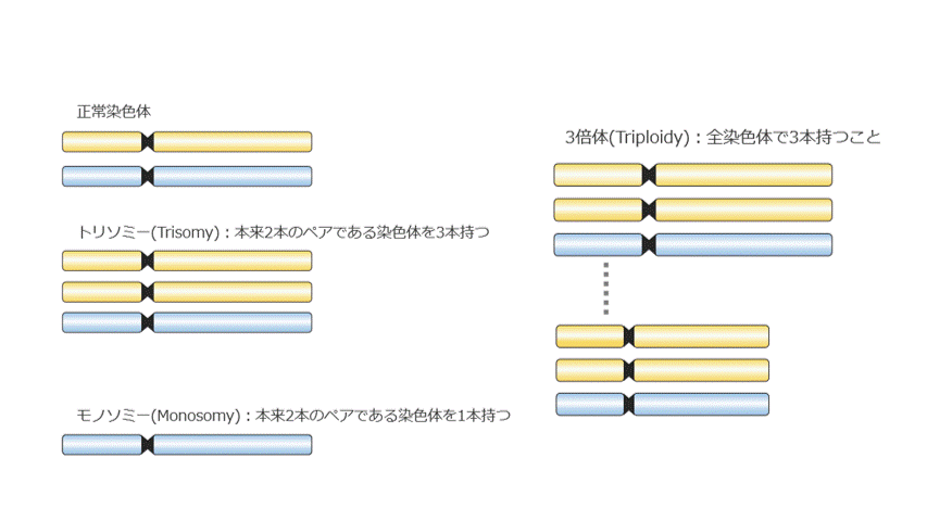 染色体の変化には「数」の変化と「構造」の変化の2種類があります。