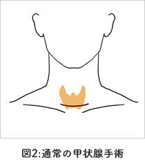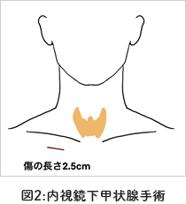 incision)で手術を行います。(図1)これにより頸部の創部が目立ちにくくなります。(腫瘍の位置や大きさにより困難なケースがあり、術前に個別の相談が必要です。)
