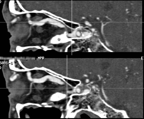One of the serious shortcomings in thinner slice scanning is a limited scanning range - the thinner the slice is, the gerater is the scanning time required to cover the target organ(s). Two rows of 0.5-mm detector array will only works for the scanning of small organ such as middle ear. On the contrary, orbita, circle of Willis, facial bone, entire skull and brain or even the cervical and lumber spine are accessible to a 4-row system.