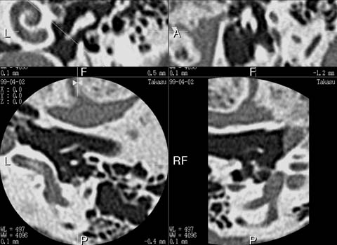 Theoretically, a half-millimeter slice is effective in eliminating partial volume effect. However, it is extremely difficult to maintain sufficient image quality duaring actual scanning. Principal subjects for 0.5-mm scanning are as follows: