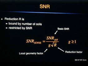 2329: SENSEのS/Nを表す式。Rはreduction factor。gはgeometric factor。 geometric factorとは、磁場の不均一などの原因によりlossするgainのことを指すよ うです。1に近い方が良い。 |