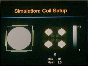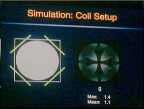 | 2342: coilとFOVの配置によってもgeometoric factorは異なる。右側はgeometric factorで、白い部分は高値(悪い)であることを示す。 | 2343: coilをFOVに対して45度傾けるとgeometric factorが改善することを示したス ライド。 |