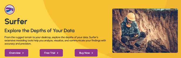 Surfer は柔軟で使いやすい等高線・3D 地表マップ作成ツールです。収集したデータを、Surfer の豊富なツールを活用して、正確さと精度を保ちながら高画質の 2D&3D マップやモデルとして表示できます。複雑な地理空間データセットを解釈し、明快で理解しやすいモデルに変換します.