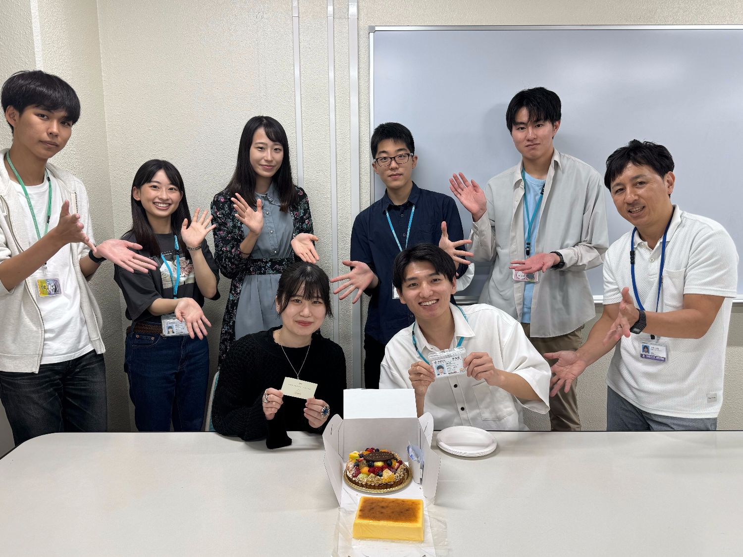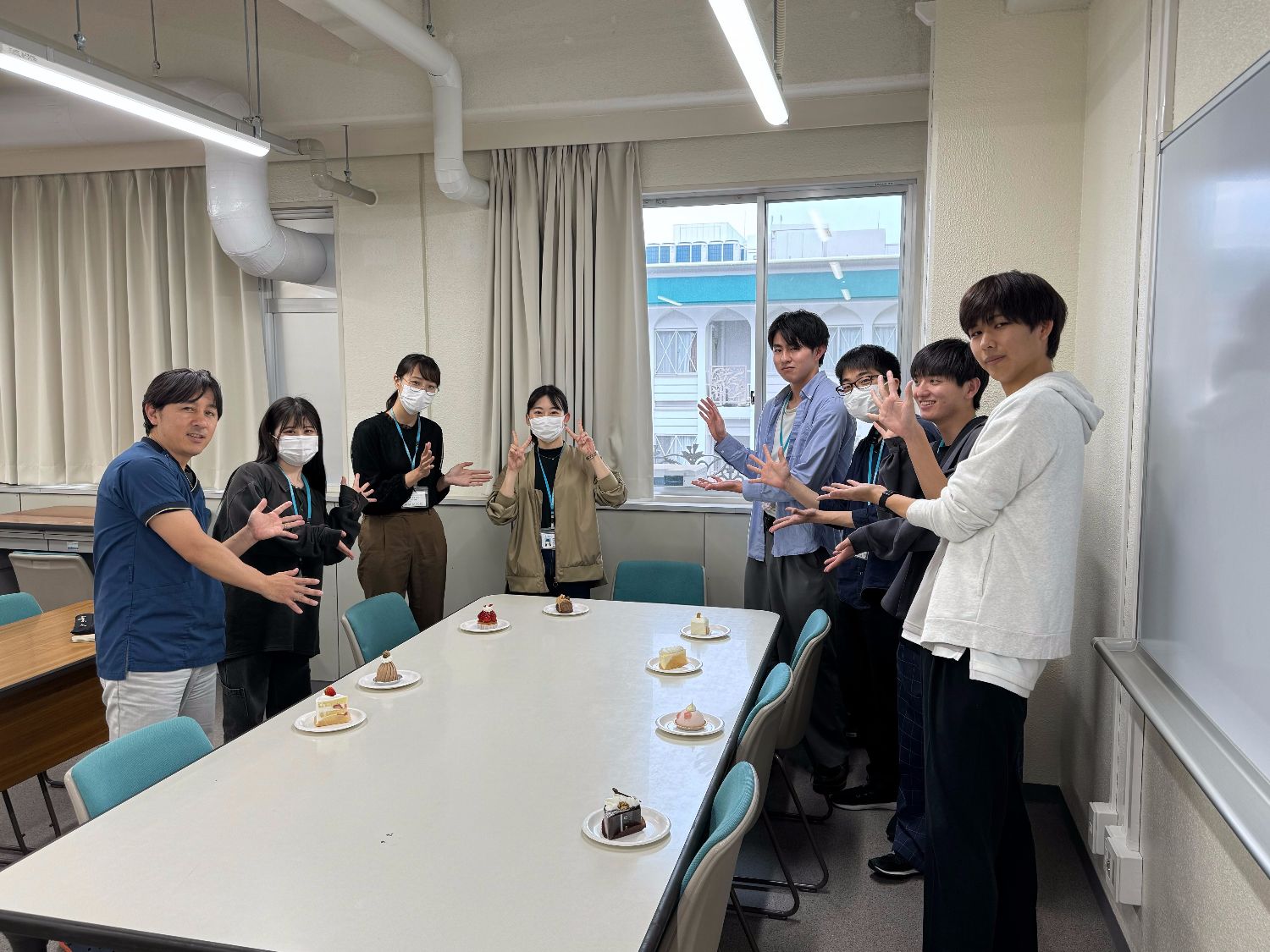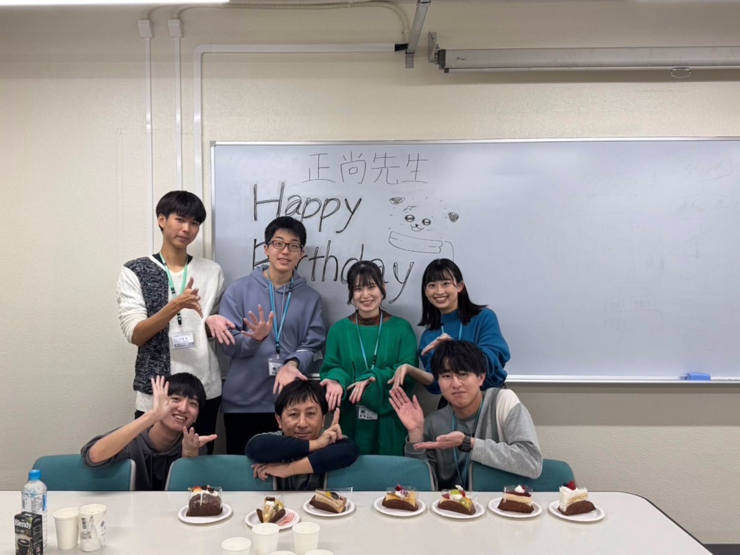 卒業研究生の誕生日に集合写真の撮影です。お誕生日おめでとうございます。皆様にとって実りのある1年であることを切に願っております。また、私の誕生日も祝っていただきありがとうございました。