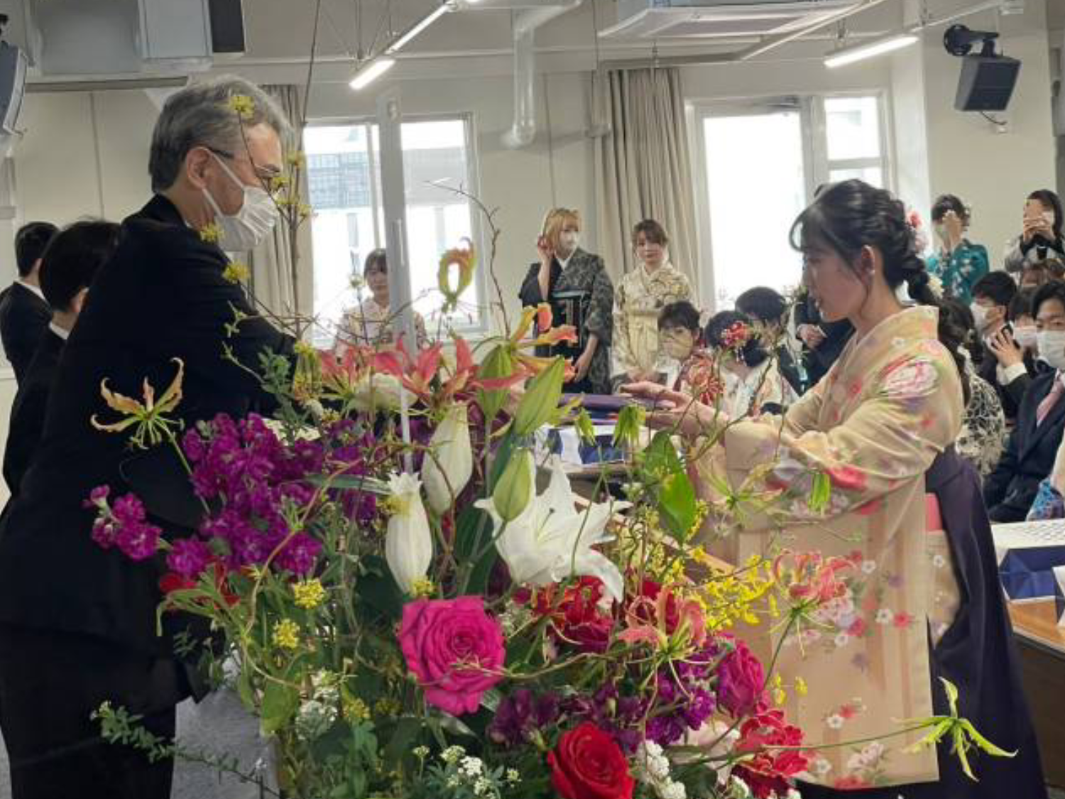 快晴のなか90名以上の学生たちが新たな門出にたちました。皆さんの頑張りが母校を支えることになります。皆さまの将来に期待いたしております。頑張ってくださいね。