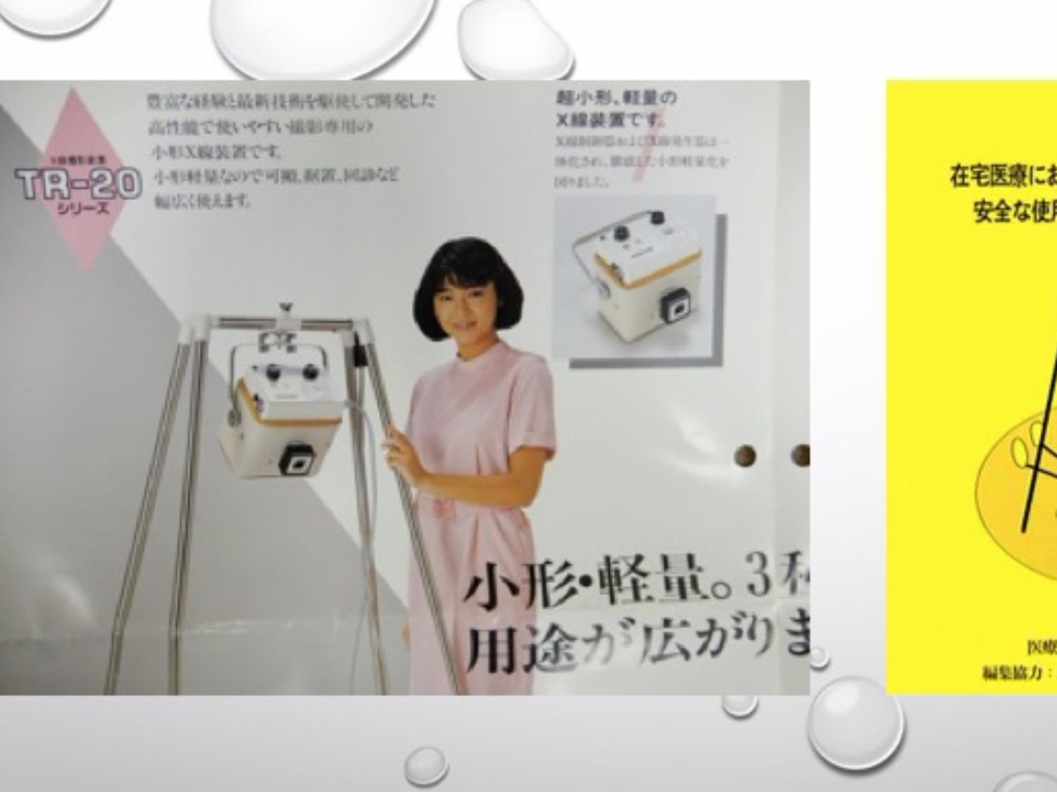 大学内の片隅から在宅用X線装置を発見。鈴木昇一先生が在宅医療の国内基準を設定する際に使用されていたものと推測。「在宅医療におけるX線撮影装置の安全利用に関するQ&Aと解説」の絵はまさにコレだ!