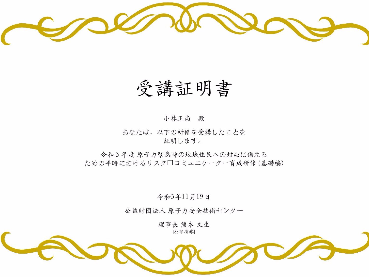 令和3年原子力緊急時の地域住民への対応に備えるための平常時におけるリスク・コミュニケーター育成研修(基礎編)を終了しました。話を「聴く」ためのスキルを養いました。