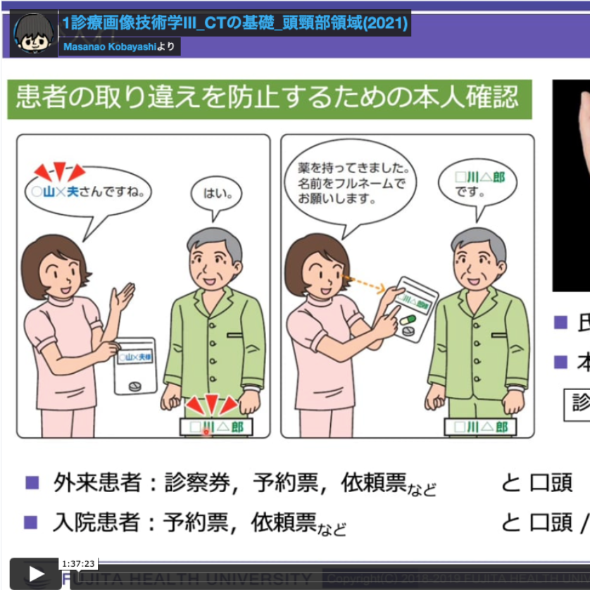 医療安全管理学(2023年度)の講義動画(1コマ)になります。X線CT検査にの医療安全管理と業務拡大に関する解説をしています。講義の終了に合わせて動画をアップしていきます。