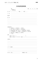 精神科301外来症例記録用紙平成 年 月 日 曜日症 例 年齢 性別 主 訴既往歴病 歴状態像診断名1a.意識障害、1b.痴呆状態、1c.人格変化2a.抑うつ状態、2b.躁状態、2c.幻覚妄想状態2d.緊張病症候群(興奮・昏迷)、2e.情意減弱状態(欠陥状態)3a.不安焦燥状態、3b.心気状態、3c.強迫症候群、3d.離人状態、3e.錯乱状態、3f.睡眠障害、3g.摂食障害4.その他( )診断診断名(AXISⅠ)1. 2.診断名(AXISⅡ)パーソナリティ・知能治療方針コメント記録欄ポリクリ 氏名 指導教官 氏名例) 090406 01日付番号※ポートフォリオ(下書き)用