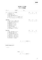 泌尿器科417担当者による評価 ポリクリ評価表グループ 学籍番号 氏名マナー、コミュニケーションの評価不可 可 良1)時間を厳守したか1 2 3 4 52)服装は適切だったか3)病院、病棟の規則は守れたか4)患者とのコミュニケーションは適切だったか5)コメディカルとのチームワークはよかったか知識の評価不可 可 良1)検査データは正しく解釈できたか1 2 3 4 52)問題点の抽出と考察はできたか3)鑑別診断は正しかったか4)診療計画は立てられたか5)治療計画は立てられたか6)症例の要約は適切か7)症例を正しく呈示できたか8)疾患の理解は正しくできたか技能の評価不可 可 良1)面接、問診を適切に行えたか1 2 3 4 52)情報は適切に記載できたか3)全身の診察は適切に行えたか4)身体所見は正しく記載できたか5)検査手技は正しく施行できたか6)治療手技は正しく施行できたか7)毎日の患者ケアーは適切か 年 月 日 指導医サイン総合評価(面接等を含めて) コメント 評価点 年 月 日 教授サイン