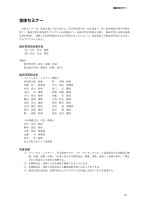 全体セミナー453全体セミナー 全体セミナーは、原則4週に1回土曜日に、医学部実習生が一同に集まり(第二教育病院実習中の班を除く)、臨床実習の到達度やプログラムの評価を行い、臨床実習の情報を交換し、臨床実習に必要な知識を深め整理し、経験した症例を検討会方式で発表することによって、発表者および参加者が考える力をつけるプログラムである。臨床実習担当責任者(正)大宮 直木 教授(副)岩田 充永 教授連絡先消化管内科:医局(内線:9240)救急総合内科:教授室(内線:2375)臨床実習担当者<クリニカル・レクチャー講師>河田耕太郎 助教林 宏樹 助教伊藤 信二 准教授早川 基治 准教授村尾 道人 助教水口 忠 講師山田 晶 講師牧野 真樹 講師吉川 哲史 教授内藤 宏 教授磯谷 澄都 講師吉岡 哲志 講師長坂 光夫 講師関谷 隆夫 教授吉田 俊治 教授有馬 豪 准教授岡本 昌隆 教授田中 徹 講師魲 成隆 助教深見 直彦 講師<症例検討会 司会・指導>岩田 充永 教授植西 憲達 教授寺澤 晃彦 准教授近藤 司 准教授笹木 晋 助教およびM5ポリクリ指導係到達目標⑴ クリニカル・レクチャー:医学教育モデル・コア・カリキュラムの〔人体各器官の正常構造と機能、病態、診断、治療〕、〔全身におよぶ生理的変化、病態、診断、治療〕、〔診療の基本〕に明記された事項をより確実に理解する。⑵ 症例検討会:診断に大切な病歴を聴取できるようになる。⑶ 症例検討会:病歴と身体所見から鑑別診断を絞り込むことができる。⑷ 臨床実習の到達度、指導内容およびプログラムを評価し改善すべき点を提案する。
