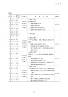 生 物 学- 160 -[実習]No.月日曜日時限担当者名到 達 目 標使用教室11016金4吉田友昭…角川裕造…小川久光…八代耕児生物学実習⑴顕微鏡操作法○顕微鏡を操作できる。○細胞を観察できる。○細胞のサイズを実測できる。○細胞の全体像を図示できる。B1実習室21016金531016金61023金4午後:学園祭1023金51023金641030金4吉田友昭…角川裕造…小川久光…八代耕児生物学実習⑵ミクロの世界を見る(細胞の構造と原形質分離の観察)○細胞の全体像を図示できる。○細胞膜の構造と機能を説明できる。○原形質分離を通じて,植物細胞の浸透圧を測定できる。B1実習室51030金561030金67116金4吉田友昭…角川裕造…小川久光…八代耕児生物学実習⑶細胞のダイナミズム(染色体・細胞分裂・筋収縮の観察)○細胞周期を説明できる。○細胞分裂過程を説明できる。○体細胞分裂と減数分裂の違いを説明できる。○筋収縮の機構を説明できる。B1実習室8116金59116金6101113金4吉田友昭…角川裕造…小川久光…八代耕児生物学実習⑷生命活動とエネルギー代謝(アルコール発酵の測定)○解糖系・発酵によるATPの産生過程を説明できる。○NAD+の再生法による代謝の違いを説明できる。○酵素の機能と代謝調節を説明できる。○酸素呼吸の過程を説明できる。B1実習室111113金5121113金6