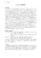 ウイルス・寄生虫学- 131 -ウイルス・寄生虫学[教育目標] ウイルス学は、ウイルス病の病態、疫学、予防を中心とした医学ウイルス学と、ウイルスをモデルとしての生命科学の2本の柱からなる。ウイルス学講義・実習では、ウイルスをこの両面から把握できるよう学習する。全体として、臨床ウイルス学への導入のために、ウイルスの一般的性状に始まり、各ウイルスの増殖過程、遺伝学の基本的知識とともに、各ウイルス感染症の病態生理、臨床症状、免疫、疫学、治療、予防について学習する。 寄生虫学においても、臨床的・疫学的に重要な寄生虫症に重点を置き、各寄生虫の生物学的特性や寄生虫症の病態、免疫、症状、診断、治療などの基本的知識を学習する。 感染症は、社会・生活環境の変化に対応し、刻々と変遷している。重症熱性血小板減少症候群(SFTS)ウイルス、中東呼吸器症候群(MERS)ウイルス、高病原性鳥インフルエンザウイルス、新型インフルエンザウイルス、エボラウイルス、ウエストナイルウイルス、クリプトスポリジウム、マラリアなどを代表として、新興・再興感染症の病因としてのウイルス・寄生虫が注目を浴びているのはその好例である。また、輸入感染症、日和見感染症としてのウイルス・寄生虫も重要性を増している。こうした背景のもと、ウイルス学・寄生虫学に対する関心・学習意欲が高まるよう講義・実習に工夫を凝らしている。 実習では、講義で学んだ知識をさらに深め、実際に手でウイルス、寄生虫を扱うことで、理解を深めるように、実習テーマを決定した。さらに、実験技術の進歩に遅れぬように、分子生物学的手法を理解し、習熟することにも努める。[学習目標(到達目標)]ウイルス学:⑴ウイルスの構造、増殖の過程を理解し、それを基にして、抗ウイルス剤、ワクチン、検査について説明できる。⑵主要なウイルスについて、引き起こされる疾患、その疫学、病態、予防を説明できる。寄生虫学:⑴寄生虫の生活史、分類、形態的特徴、感染経路を説明できる。⑵主要な寄生虫症の疫学、病態、診断、治療、予防を説明できる。 実習を通して、感染性のウイルス、寄生虫の取り扱い法に習熟するとともに、講義内容を今一度復習し、主要なウイルス、寄生虫について、分類、形態、疫学、疾患、病態、予防について十分に理解する。[ 評 価 ] 定期試験評価点を最終評価とする。再試験合格者は再試験評価点をこれにあてるが、再試験不合格者には定期試験と再試験のうち高い方の評価点をあてる。なお、定期試験の「評点」の決定にあたっては、IT試験の成績を20%の比率で加味するとともに、授業への出席状況、日頃の学習態度、実習態度、実習レポートなどを総合的に判定・評価する。