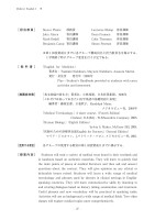 Medical EnglishⅠ ※- 27 -[担当教員] Steeve Plante准教授Laurence Hislop客員講師John Ahern客員講師Dean Fransen客員講師Mark Bodell客員講師Colin Thomson客員講師Benjamin Camp客員講師Simon Pearson客員講師※第1回授業前日までに各グループ構成員名と担当教員名を掲示する。1学期終了時にグループ変更を行う予定である。[教科書] 「English for Medicine」著者名:Toshiaki Nishihara, Mayumi Nishihara, Assunta Martin発行:金星堂 発行年:2005年Plus – Student’s Handbook provided to students with extra activities and homework.[推薦参考書] 「英文抄録の書き方」著者名;小林茂昭、日本医事新報、1996年「これだけは知っておきたい医学英語の基礎用語と表現」編著者:藤枝宏壽、玉巻欣子、Randolph Mann、メジカルビュー社、2004年「Medical Terminology」A short course,(Fourth Edition)Chabner, D.E.(Ed.) , W.B.Saunders Company, 2005.「Human Biology」(Eighth Edition) Sylvia S. Mader, McGraw Hill, 2004.「医師のための診療英会話English for Doctors」(Second Edition)マリア・ジョルフィ、J.パトリック・バロン, メジカルビュー社, 2001.[使用する教室] 各グループの使用する教室は第1回授業前日までに掲示する。[授業内容] Students will read a variety of medical texts found in their textbook and in handouts based on authentic materials. They will learn to quickly nd the main points of pieces of medical literature and then ask and answer questions about the content. They will give opinions on any ethical or debatable issues raised. Students will learn a wide range of medical terminology and phrases used by doctors in clinical settings in English-speaking countries. They will learn communicative skills by listening to and creating dialogues based on history taking, examination, and treatment. Useful phrases and new vocabulary will be practiced in speaking tasks. Activities will use as background a wide range of medical elds. Two video classes will explore medical topics more comprehensively.