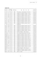 Medical EnglishⅠ ※- 28 -[授業日程]No.月日曜日時限担当者名授 業 内 容使用教室142木1/2全員Orientation - Introductions/ActivitiesSGL室249木1/2全員English for Medicine Chapter 1 part 1SGL室3416木1/2全員English for Medicine Chapter 1 part 2SGL室4423木1/2全員English for Medicine chapter 2 part 1SGL室5430木1/2全員English for Medicine chapter 2 part 2SGL室657木1/2全員English for Medicine chapter 3 part 1SGL室7514木1/2全員English for Medicine chapter 3 part 2SGL室8521木1/2全員English for Medicine chapter 4 part 1SGL室9528木1/2全員English for Medicine chapter 4 part 2SGL室1064木1/2全員English for Medicine chapter 5 part 1SGL室611木1/2(総長の日)11618木1/2全員English for Medicine chapter 5 part 2SGL室12625木1/2全員English for Medicine chapter 6 part 1SGL室1372木1/2全員English for Medicine chapter 6 part 2SGL室1479木1/2全員English for Medicine chapter 7 part 1SGL室15716木1/2全員English for Medicine chapter 7 part 2SGL室16723木1/2全員Medical English - Video Lesson 1SGL室17101木1/2全員New Groups Introductions/ActivitiesSGL室18108木1/2全員English for Medicine chapter 8 part 1SGL室191015木1/2全員English for Medicine chapter 8 part 2SGL室201022木1/2全員English for Medicine chapter 9 part 1SGL室211029木1/2全員English for Medicine chapter 9 part 2SGL室22115木1/2全員English for Medicine chapter 10 part 1SGL室231112木1/2全員English for Medicine chapter 10 part 2SGL室241119木1/2全員English for Medicine chapter 11 part 1SGL室251126木1/2全員English for Medicine chapter 11 part 2SGL室26123木1/2全員English for Medicine chapter 12 part 1SGL室271210木1/2全員English for Medicine chapter 12 part 2SGL室281217木1/2全員English for Medicine chapter 12 part 3SGL室291224木1/2全員Medical English - Video Lesson 2SGL室3017木1/2全員English for Medicine chapter 13 part 1SGL室31114木1/2全員English for Medicine chapter 13 part 2SGL室32121木1/2全員Review LessonSGL室