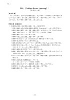 PBLⅠ- 63 -PBL(Problem Based Learning)Ⅰ〈A–4–⑴、⑵〉[教育目標] PBLの目的は、自分の力で課題を発見し、自己学習によって解決するための能力を身につけることである。単なる個人学習のみならず、一緒に学習するグループを1つのチームと考えて、共に学習する姿勢を示すことが大切である。[学習目標(到達目標)]Ⅰ.医療現場の流れ(初診患者の診察)に沿った症例の学習⑴主訴(症候)から考えられる疾患・病態を(Hypothesis)しっかりと挙げられる。⑵簡単な病歴を聴取した後、疾患・病態を絞り、次に知るべきこと(Need To Know:病歴)を挙げられる。⇒1日目(月)テュータへの報告(見極め)⑶病歴に関するプロブレムを挙げられる。⑷病歴から考えられる疾患・病態を絞ることができる。⑸病歴の次に知るべきこと(Need To Know: 身体所見)を挙げられる。⑹身体所見に関するプロブレムを挙げられる。⑺病歴、身体所見から得られたプロブレムを整理したプロブレムリストを作成できる。⑻身体所見の次に知るべきこと(Need To Know: 簡単な検査項目)を挙げられる。⇒1日目(月)テュータへの報告(見極め)⑼簡単な検査所見に関するプロブレムを挙げられる。⑽病歴、身体所見から得られたプロブレムリストに検査所見から得られたプロブレムを追加した後、再度、プロブレムリストを整理できる。⑾プロブレムを解決するにはどのようなプラン(検査の計画)を作成すればよいか説明できる。⑿考えられる疾患・病態を絞ることができる。…⇒ 2日目(水)テュータへの報告(見極め)⒀簡単な検査の次に行うべき精密検査(治療)を考えることができる。⒁最終的に、最も考えられる疾患・病態を絞ることができる。⒂病態生理図を用いて考えられることができる。