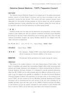 Selective General Medicine - TOEFL Preparation Course※- 170 -Selective General Medicine - TOEFL Preparation Course※[教育目標] The Selective General Medicine Program is an integral part of the global international medical course at Fujita Health University and has been increasing in size and popularity during the last decade. This course will help students prepare more adequately for this special overseas program as well as answer any and all questions regarding placement, testing, scheduling and such. Students taking this course will not be required to take an interview placement test before going abroad. [ 評 価 ] Students should read the book and do homework and preparation activities before coming to class, making sure that any unknown vocabulary words have been identied. Reviewing the previous week’s information and reviewing again after class will help students successfully complete the course. Students should be very diligent with the video work given as homework.[コーディネーター] 正コーディネーター Steeve Plante 准教授(英語)[担当教員] Steeve Plante 准教授[教科書] 「Any Japanese – English TOEFL course book with grammar and test advice in Japanese is a welcome addition to the course.[推薦参考書] 「All materials will be provided by the teacher during the course」[授業内容] This course is for medical students in the early clinical phase of their studies who need to consolidate and expand their intermediate English ability while interacting with patients and foreign classmates and colleagues in a clinical setting during the Selective General Medicine Overseas Program. It is designed to provide general information about the iBT TOEFL test as well as details about the dierent sections of the test. In order to get the highest score possible for eligibility to the Selective General Medicine Overseas Program, students will experience, in the same order as the sections on the actual TOEFL, the four sections of the test (Reading, Listening, Speaking and Writing). Strategies will be demonstrated for each section of the test with examples for all possible questions types and task types on the TOEFL. Practical exercises will follow so that students can use the specic strategies for each question or task. Students will have to take the TOEFL test at least once, more likely twice during the semester.