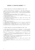 10臨床実習における患者等の個人情報保護についてⅠ.学内施設での臨床実習における患者等の個人情報保護に関する規則(学生用)1.臨床実習中に患者の個人情報を含むすべての個人情報について、漏洩、盗聴、無許可閲覧、改ざん、破壊あるいは消去などに関して学生が関与する問題が発生した時、発見した医学部あるいは病院職員は、直ちに実習担当の指導医または実習責任者に口頭で報告し、実習責任者は各教育病院の臨床実習運営委員会委員長に報告する。2.各教育病院の臨床実習運営委員会委員長は関係者および学生から事情聴取を行なう。3.各教育病院の臨床実習運営委員会委員長は医学部長、病院長、教務委員長、学生指導委員長、事務部長らと協議して問題の解決に当たる。4.医学部長は教授会において事例の報告を行なう。5.学生が個人情報を故意に漏洩、盗聴、無許可閲覧、改ざん、破壊あるいは消去した場合には、学則第45条および第46 条に基づく処罰を行なう。6.また、個人情報を過失により漏洩、消去あるいは紛失した場合であっても学則に基づき処罰を行なう場合がある。7.大学側は、必要ならば刑事告発をする。注1:早期臨床体験実習中に問題が発生した場合には第1項、第2項、第3項における「各教育病院の臨床実習運営委員会委員長」を「早期臨床体験実習コーディネーター」と読み替えるものとする。注1:選択制総合医学実習中に問題が発生した場合には第1項、第2項、第3項における「各教育病院の臨床実習運営委員会委員長」を「選択制総合医学委員会(国内)委員長」と読み替えるものとする。Ⅱ.学外施設での臨床実習における患者等の個人情報保護に関する規則(学生用)1.学外施設での臨床実習中に患者の個人情報を含むすべての個人情報について、漏洩、盗聴、無許可閲覧、改ざん、破壊あるいは消去などに関して学生が関与する問題が発生した時、発見した施設職員は、直ちに学外実習担当講師に口頭で報告し、学外実習担当講師はファックスまたは電話で医学部長に連絡する。2.医学部長は、6学年選択制総合医学においては選択制総合医学委員会(国内)委員長に対して、また4・5学年臨床実習においては第一教育病院臨床実習運営委員会委員長に対して、関係者および学生から事情聴取を行なうよう指示する。3.選択制総合医学委員会(国内)委員長又は第一教育病院臨床実習運営委員会委員長は医学部長、教務委員長、学生指導委員長、事務部長らと協議して問題の解決に当たる。4.医学部長は教授会において事例の報告を行なう。5.学生が個人情報を故意に漏洩、盗聴、無許可閲覧、改ざん、破壊あるいは消去した場合には、学則第45条および第46 条に基づく処罰を行なう。6.また、個人情報を過失により漏洩、消去あるいは紛失した場合であっても学則に基づき処罰を行なう場合がある。