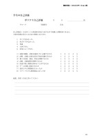 整形外科・リハビリテーション科265学生の自己評価ポリクリ自己評価月 日科 グループ 学籍番号 氏名自己評価は、自分のCCS到達度を知るためのもので成績とは関係ありません。今後の指導に役立てるための資料になります。1 全くできなかった。2 あまりできなかった。3 普通4 大体できた。5 非常によくできた。1)病歴の聴取、診察を適切に行い記載できたか1 2 3 4 52)診断、治療に必要な基本手技を体験できたか1 2 3 4 53)個々の症候、検査、所見を理解できたか1 2 3 4 54)診断、治療過程を理解できたか1 2 3 4 55)疾患に関し理解を深めることができたか1 2 3 4 56)チーム医療に参加できたか1 2 3 4 57)患者との人間関係はよかったか1 2 3 4 58)スタッフとの人間関係はよかったか1 2 3 4 5感想、希望(自由に書いて下さい)