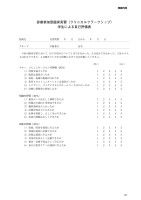 神経内科283診療参加型臨床実習(クリニカルクラークシップ) 学生による自己評価表配属先 実習期間 年 月 日から 年 月 日グループ 学籍番号 氏名 今回の臨床実習において、以下の項目について1はできなかった、2は充分できなかった、3はふつう、4はかなりできた、5は優れていたの5段階にわけて自己評価してください。(悪い)(良い)マナー、コミュニケーションの評価(20%)1)時間を厳守したか1 2 3 4 52)服装は適切だったか1 2 3 4 53)病院、病棟の規則は守れたか1 2 3 4 54)患者とのコミュニケーションは適切だったか1 2 3 4 55)レジデント、コメデイカルとのチームワークはよかったか1 2 3 4 56)診療に積極的に参加したか1 2 3 4 5知識の評価(40%)1)検査データは正しく解釈できたか1 2 3 4 52)問題点の抽出と考察はできたか1 2 3 4 53)鑑別診断は正しかったか1 2 3 4 54)診療計画は立てられたか1 2 3 4 55)症例を把握し、正しく呈示できたか1 2 3 4 56)疾患の理解は正しくできたか1 2 3 4 5技能の評価(40%)1)面接、問診を適切に行えたか1 2 3 4 52)情報は適切に記載できたか1 2 3 4 53)診察は適切に行えたか1 2 3 4 54)身体所見は正しく記載できたか1 2 3 4 55)検査・治療手技は正しく行えたか1 2 3 4 56)毎日の患者ケアーは適切に行えたか1 2 3 4 5