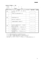 耳鼻咽喉科321医行為などの実施チェック表 実習期間 月 日 ~ 月 日 グループ 学籍番号 氏名区分レベル医行為月/日実習の評価指導医診察1耳(外耳道、鼓膜、聴力)、口腔、鼻腔の診察ができるA B C D1甲状腺を含めた頸部の触診が行えるA B C D検査1純音聴力検査が行えるA B C D1簡単なめまいの検査が行えるA B C D3耳鼻咽喉内視鏡検査(軟性鏡のみ)A B C D治療3鼓室穿刺、鼓膜切開を見学し、その適応を述べることができるA B C D3鼻出血止血法を見学し、その適応を述べることができるA B C D3口蓋扁桃摘出術を見学し、その適応を述べることができるA B C D3気管切開術を見学し、その適応を述べることができるA B C D レベル1:指導医の指導・監督のもとに実施が許容されるもの。 レベル2:状況により指導医の指導・監督のもとに実施が許容されるもの。 レベル3:原則として指導医の実施の介助または見学にとどめるもの。 実習の評価:A.よくできた B.できた C.できなかった D.評価不能(機会がなかった)