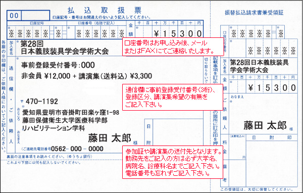 ※払込取扱票には、参加者氏名、事前登録受付番号(3桁)、連絡先(住所・電話番号)を必ず記入してください。