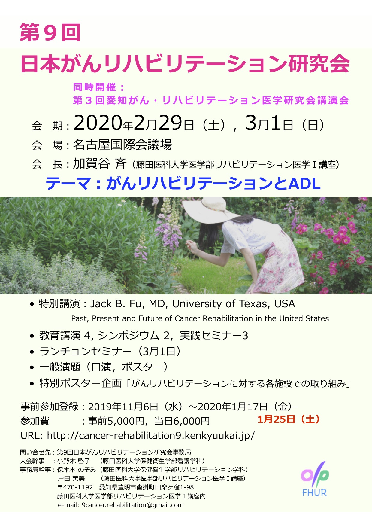 | 名称 | 第9回日本がんリハビリテーション研究会 第3回愛知がん・リハビリテーション医学研究会講演会 |