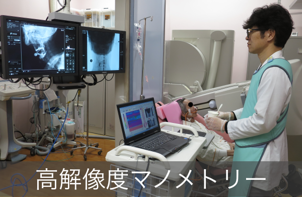 鼻から細いカテーテルを挿入し、飲み込み時の咽頭(のど)や食道内の圧力を測定する検査です。嚥下内視鏡検査、嚥下造影検査では評価が必ずしも十分ではない嚥下障害の原因や神経生理学的側面を詳細に評価します。