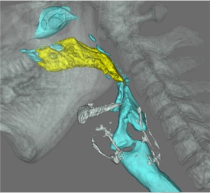 320列CTを用いて嚥下動態の4次元的観察を行います。飲み込み時の嚥下関連器官の動態を経時的に詳細に評価することができます。当検査は、藤田医科大学病院にて行っています。