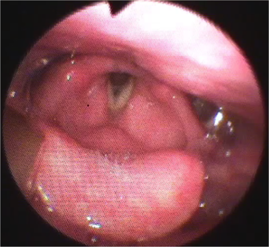 鼻から細い内視鏡カメラを入れて、のどの様子を直接観察する検査です。のどの中にある痰などの分泌物の存在、のどの動き、食べた物が口からのどに送り込まれる様子を詳しく評価します。