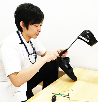 理学療法では「立つ」「歩く」などの基本動作や階段昇降、屋外歩行などの応用動作の獲得を目標に訓練します。また、リハビリ科医師の指示に基づいて下肢装具の作成にも関与しています。