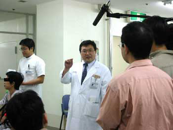 数名のNHkスタッフが撮影に参加し、トレッドミル歩行訓練についての撮影が開始されました。